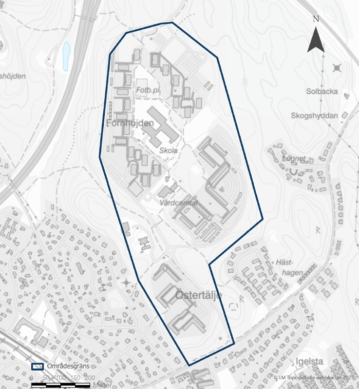 Fornhöjden är ett kompakt bostadsområde i den östra delen av staden. Polisen markerar hela området runt centrumtorget och de kringliggande kvarteren.